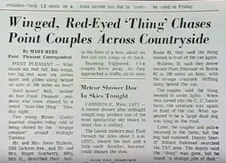 - 1966 Local News print from November 17th 1966: "Four Pt. Pleasant Car Occupants See 'Bird-Like Creature'"
